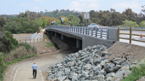 Two elements most critical to the design of the replacement bridge were the biological studies and hydraulic analysis. The biological studies identified several environmentally sensitive areas located within the footprint of the project impact area, requiring modifications to the bridge design and mitigation of the impacts during construction. For the hydraulic analysis, Kleinfelder evaluated the project using Federal Emergency Management Agency (FEMA) flow rates and Caltrans guidelines to ensure the bridge would withstand major flood events with adequate freeboard and scour provisions.