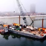 The two drills were then connected via an open trench installation. In order to connect the HDD exits to the open trench portion, the contractor had Kleinfelder design cofferdams to be placed out in the sound.