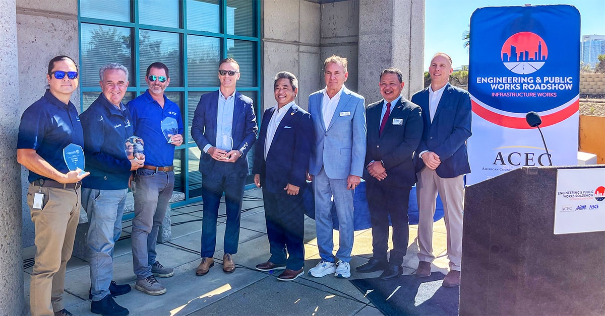 Pure Water San Diego recently hosted a pivotal stop on the Engineering & Public Works Roadshow, a national initiative jointly led by the American Council of Engineering Companies (ACEC), the American Public Works Association (APWA), and the American Society of Civil Engineers (ASCE). The event celebrated the groundbreaking Pure Water San Diego program—one of the most forward-thinking public infrastructure projects in the country. Kleinfelder’s Vic Bianes, National President of AWPA, proudly presented remarks during the Roadshow ceremony, highlighting the importance of infrastructure projects like Pure Water and recognizing the teams that support this work.
