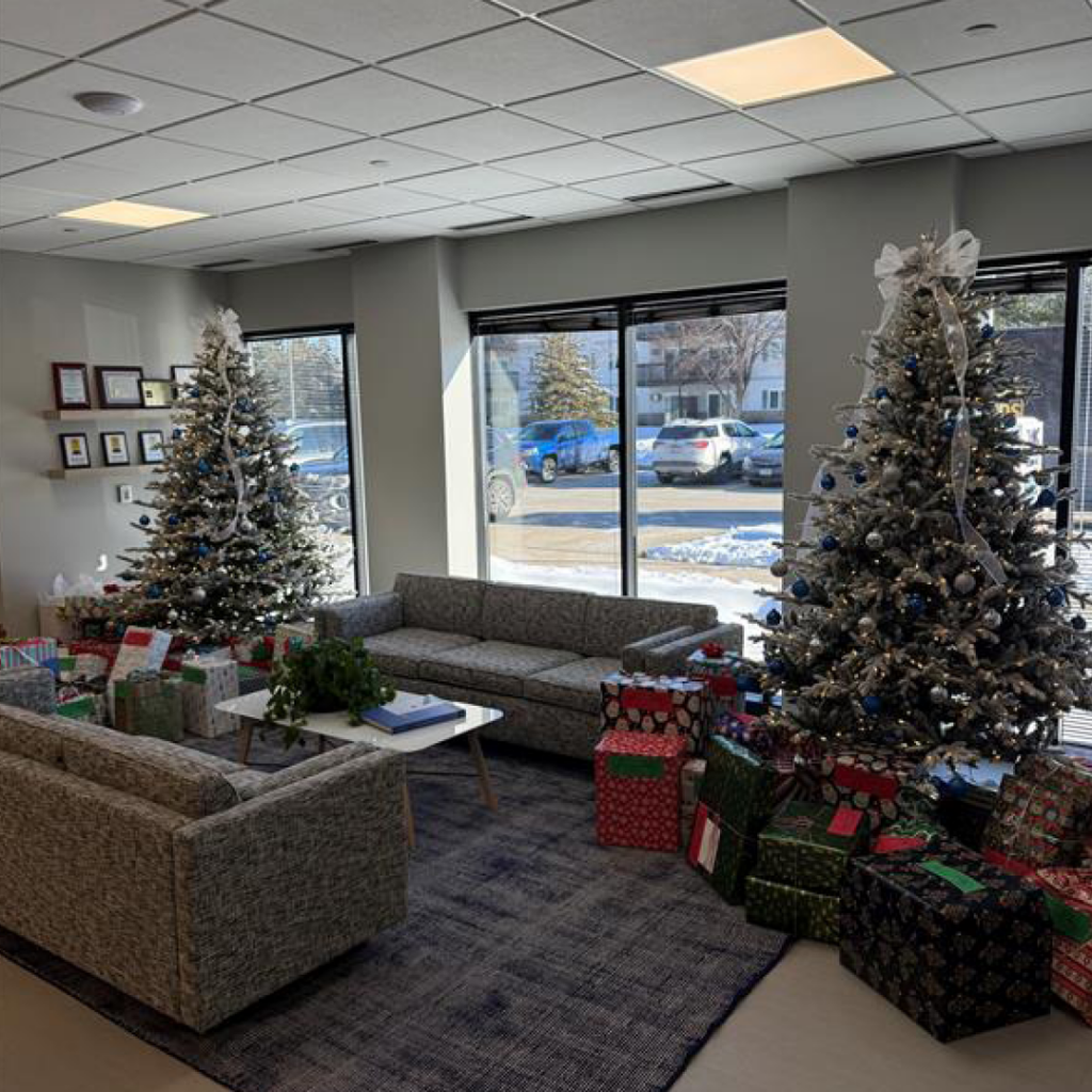 The West Des Moines office continued a meaningful holiday tradition by partnering with the Polk County Family Enrichment Center to support children in the local community. Employees volunteered to shop for and wrap gifts based on each child’s holiday wish list, filling the office with generosity as the presents were placed under the tree before being collected for delivery and helping make the season special for families in need.