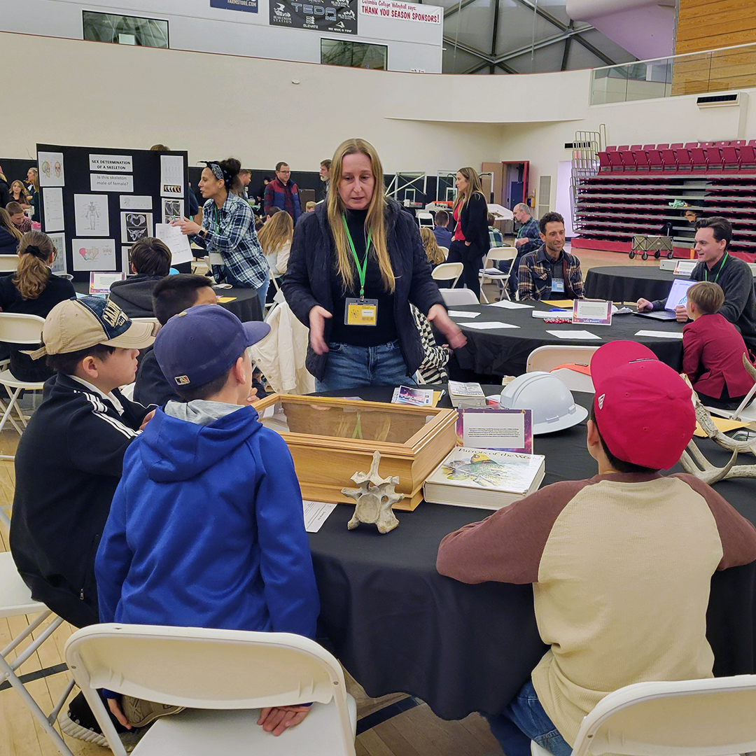Maia, a wildlife biologist in our Sacramento office, recently presented at Dinner with a Scientist, an annual event hosted by Tuolumne County Schools at Columbia College in Sonora, CA. The program brings together 5th–8th grade students and professionals from diverse scientific fields for interactive presentations and shared conversations over dinner. Her participation helped spark curiosity in wildlife biology, ecology, and environmental science among local students.